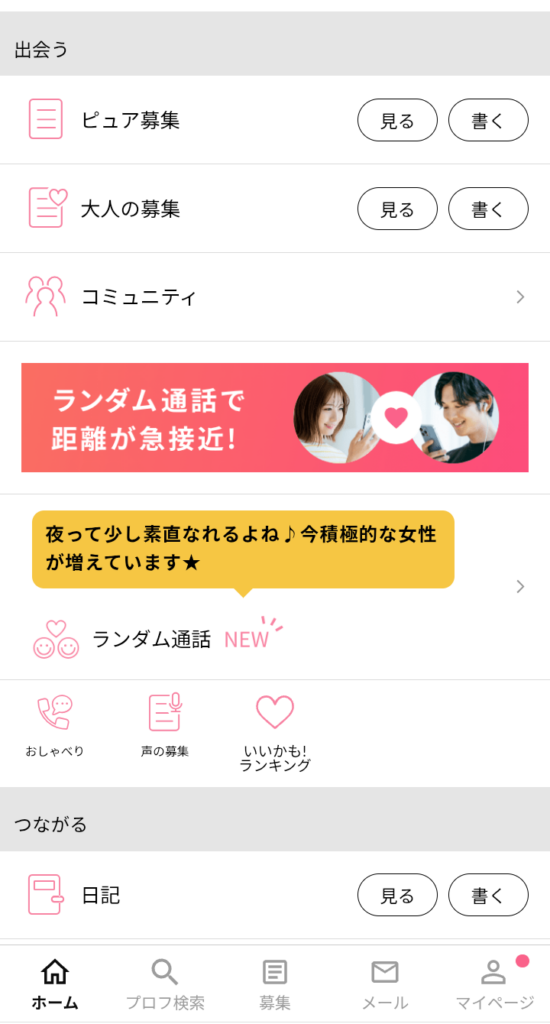 趣味友達、食事相手、急な遊び相手など、気軽な出会い探しに強い。