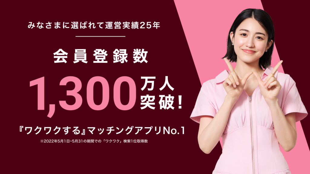 ワクワクメールは累計会員数1,300万人を突破した出会い系サイト。